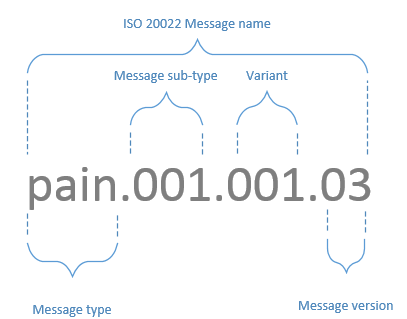 In ISO 20022’s naming scheme, message type is described with four letters followed by three sets of numbers. This can be seen in the figure below.
